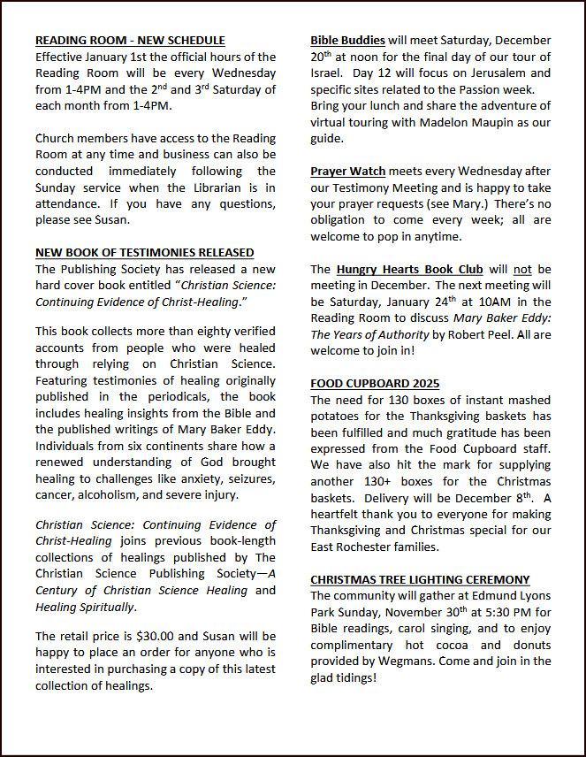 Member Resources Please use these links to access the websites mentioned above. www.Bibleroads.com www.christianscience.com Events Contact us with any questions Name Email Address Message Submit