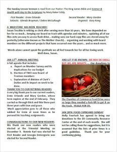 church bulletin January 2024 pg2 jpg by Pam Thompson | Jan 27, 2024 | 0 comments Submit a Comment Cancel replyYour email address will not be published. Required fields are marked *Comment * Name * Email * Website
